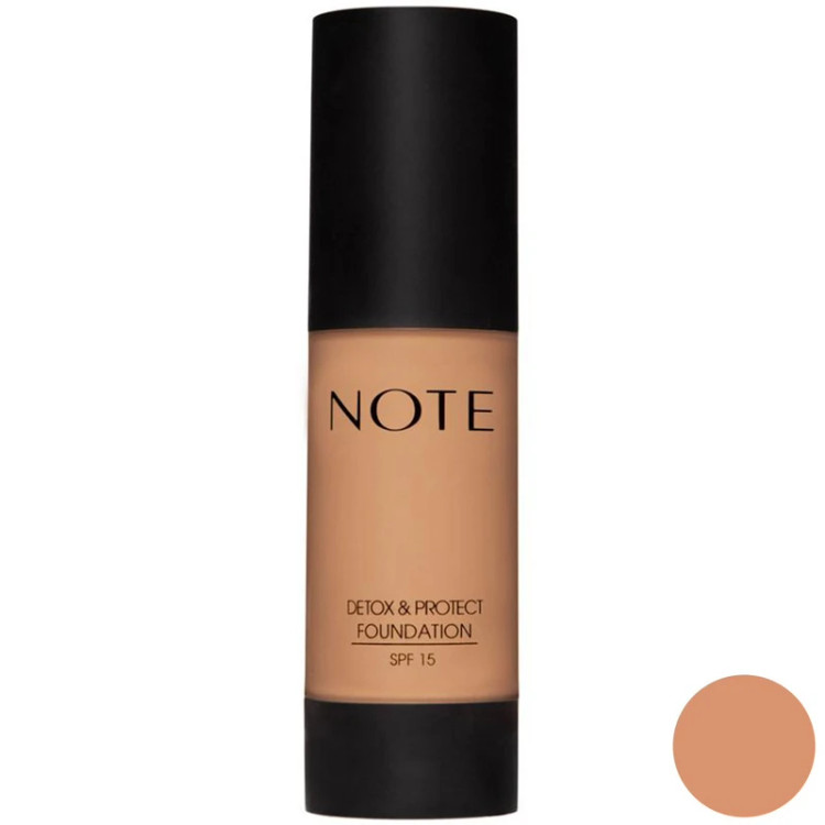 کرم پودر نوت، مناسب انواع پوست، شماره رنگ 12، با پوشانندگی بالا، حجم 35 میلیلیتر، با SPF15، کاهش چروک، محافظت از پوست در برابر خشکی، رادیکالهای آزاد و آلودگی، فاقد پارابن، حاوی روغن بادام شیرین، عصاره مخمر، ویتامین E، سری Detox And Protect