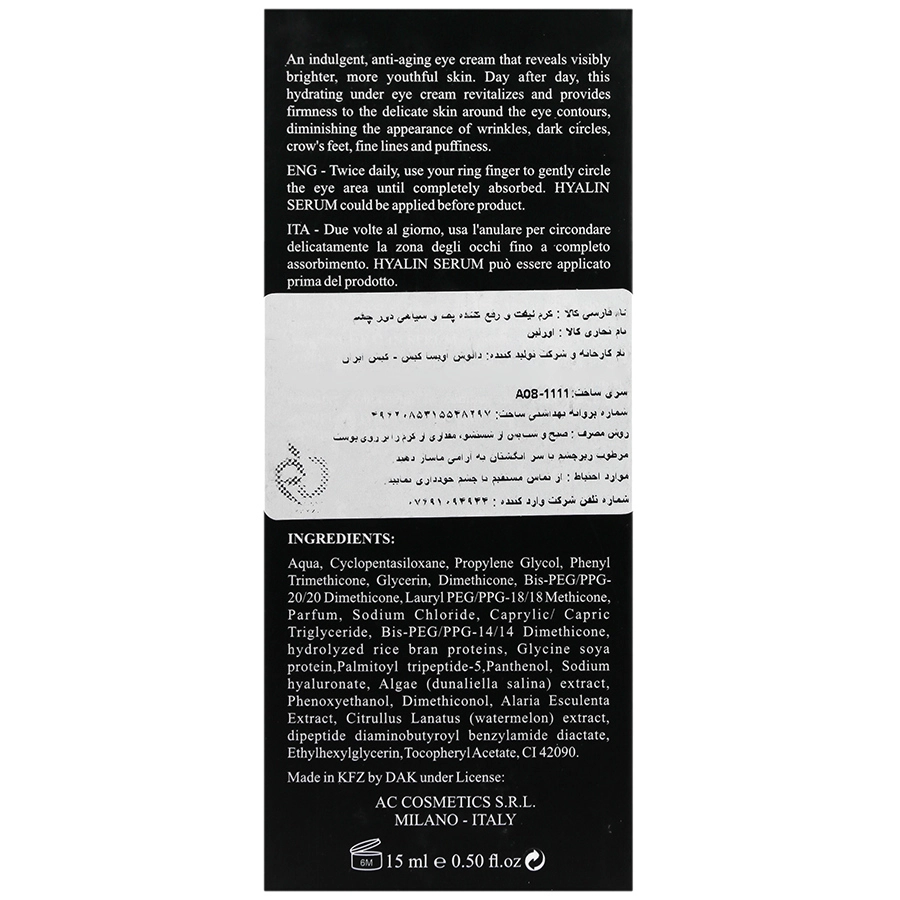 کرم دور چشم اورلین مدل ضد چروک ml15 دارای بافت سبک و نفوذ بالا برای استفاده روزانه مناسب برای انواع پوست حتی پوستهای حساس انتخابی مطمئن برای مراقبت تخصصی از پوست دور چشم تحریک کلاژن و آبرسانی با پالمیتوئیل تریپپتاید-5 و هیالورونیک اسید بهبود خطوط عمیق و پنجه کلاغی حاوی پپتید SYN®-AKE مرطوب کننده طبیعی و آنتی اکسیدان محتوی عصاره جلبکهای دریایی و هندوانه کاهش تیرگی و پف زیر چشم به کمک پروتئینهای هیدرولیز شده سبوس برنج و سویا بهبود شادابی، استحکام و جوانی پوست اطراف چشم